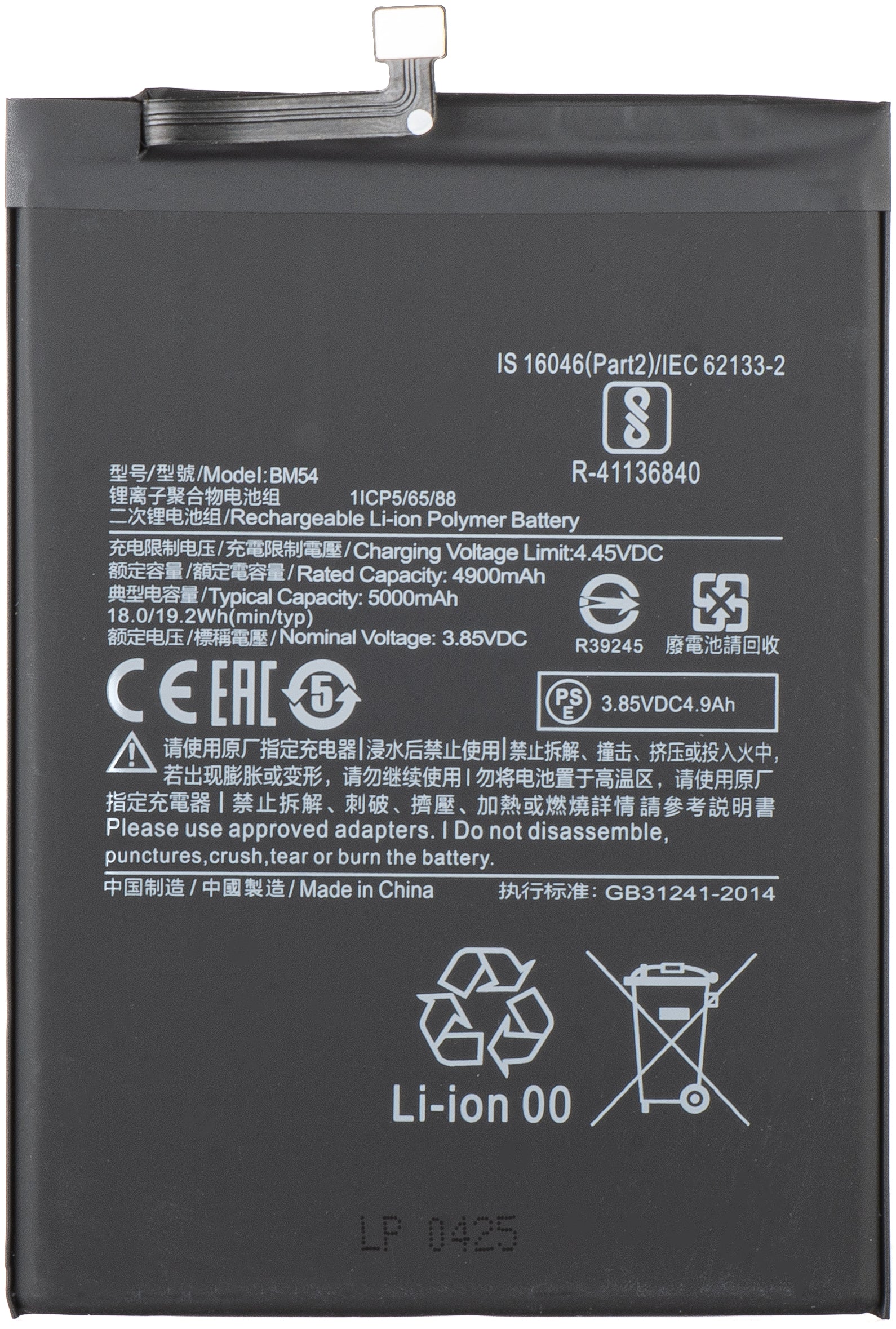 Battery for Xiaomi Redmi Note 9T 5G, BM54
