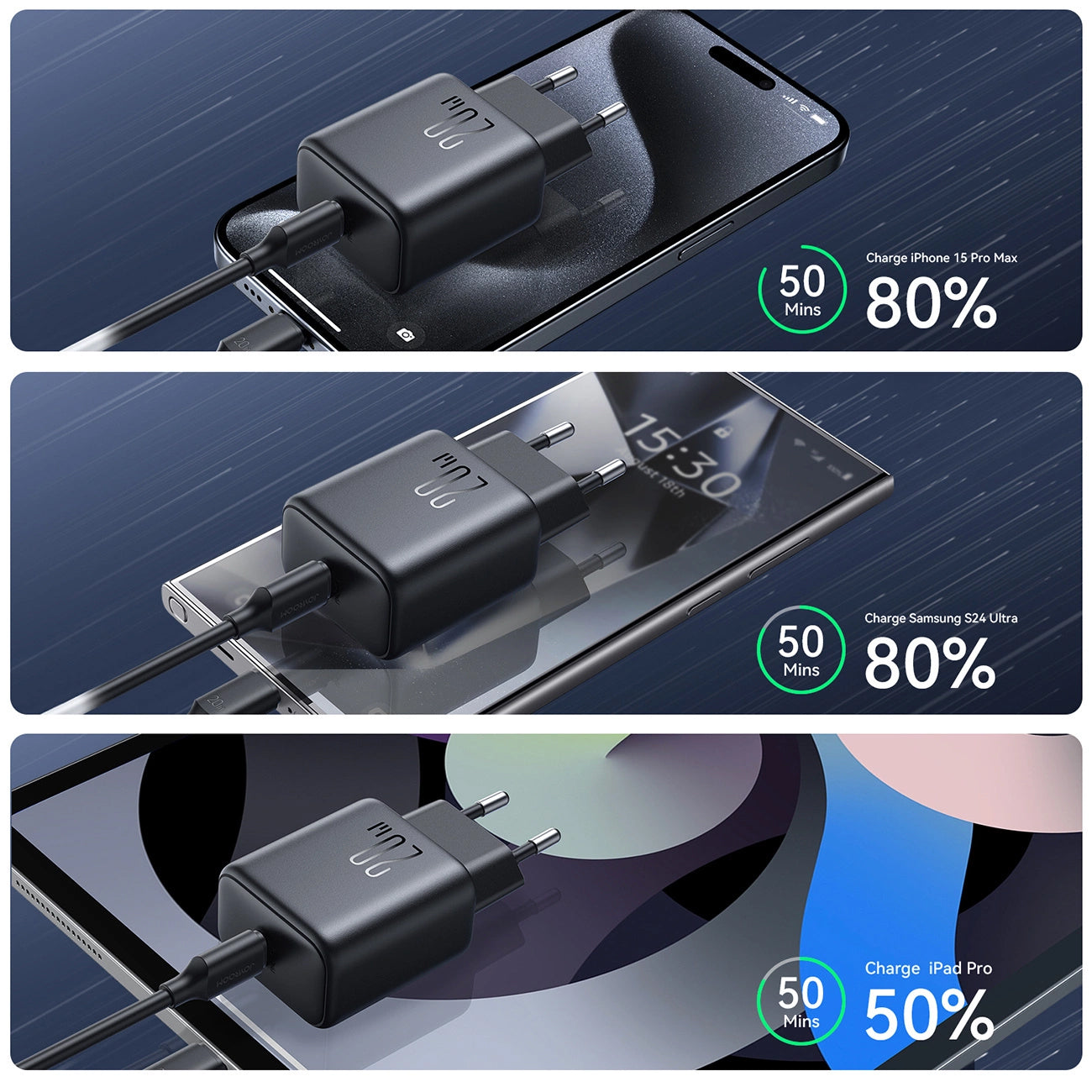 The Joyroom JR-TCF20 network charger offers fast and safe charging for phones, tablets, or other compatible devices.