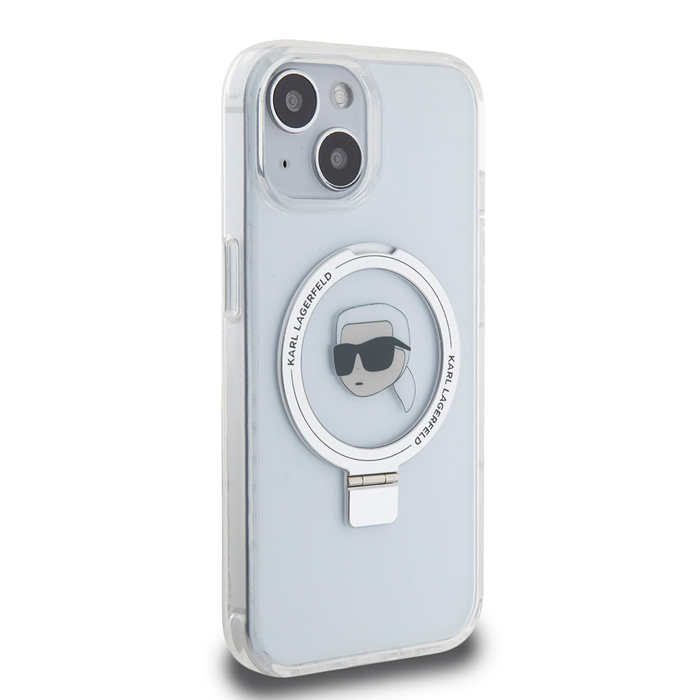 MagSafe Case for Apple iPhone 15, Karl Lagerfeld, Ring Stand Karl's Head, White